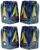 CHECK COMPARE PRICES for BEST BUY and GET SPECIAL DISCOUNT!!! ABOUT Set Of Four (4) MARA STONEWARE COLLECTION - 12 Oz Coffee Cup Collectible Square Blue Mugs With Countertop Stackable Mug Post - Sail Boat